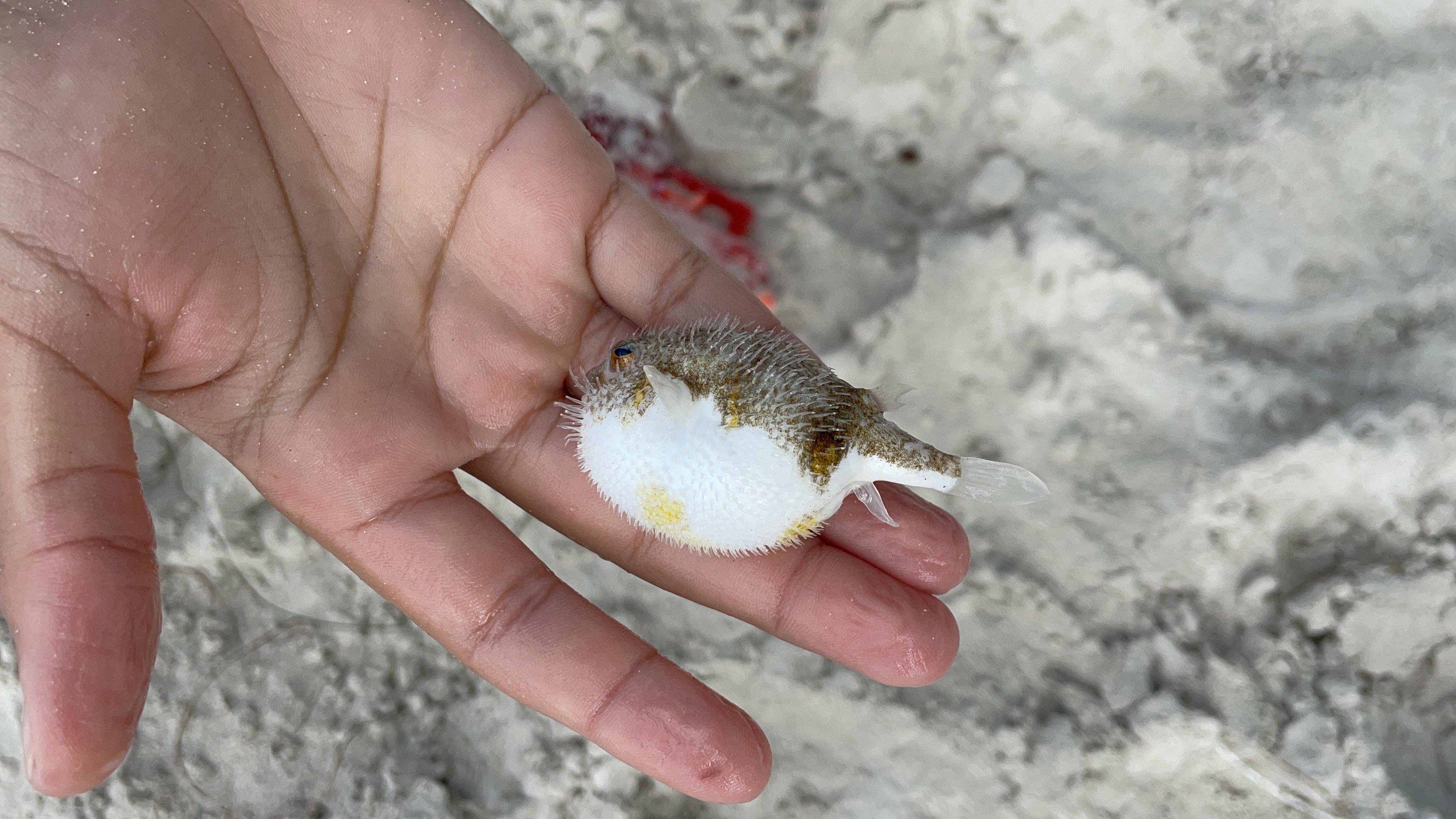I witnessed two boys nearby trying to catch a pufferfish. I really didn't think they'd succeed but they did! It was really interesting, and they were happy to give us a demonstration of the pour thing's nervous reaction to being a "fish out of water."